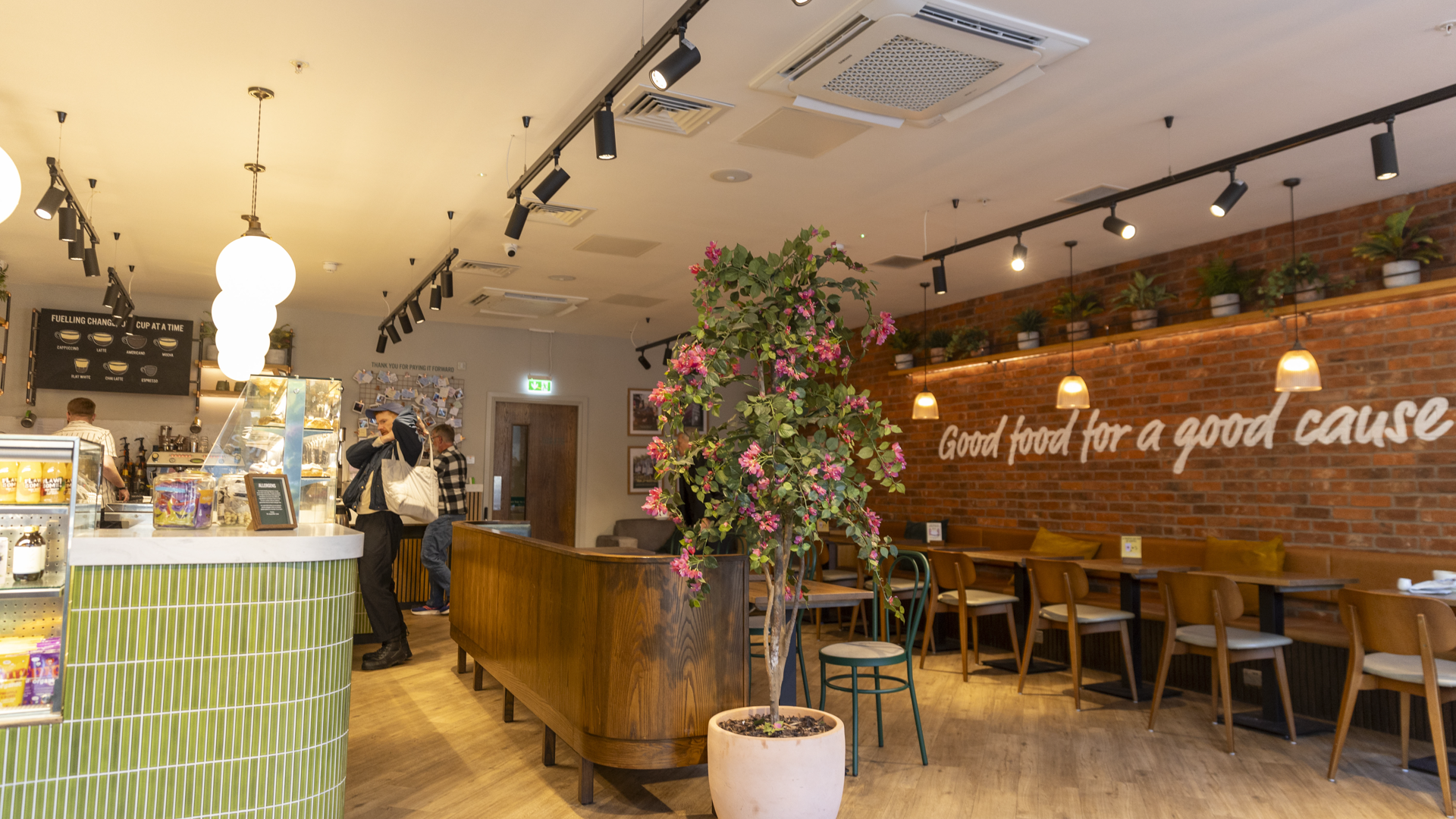 Top-notch barista-made coffee. Banging baked potatoes, salads, bagels, toasties, pastries, cakes, and smoothies. Free meals and support for people experiencing homelessness.